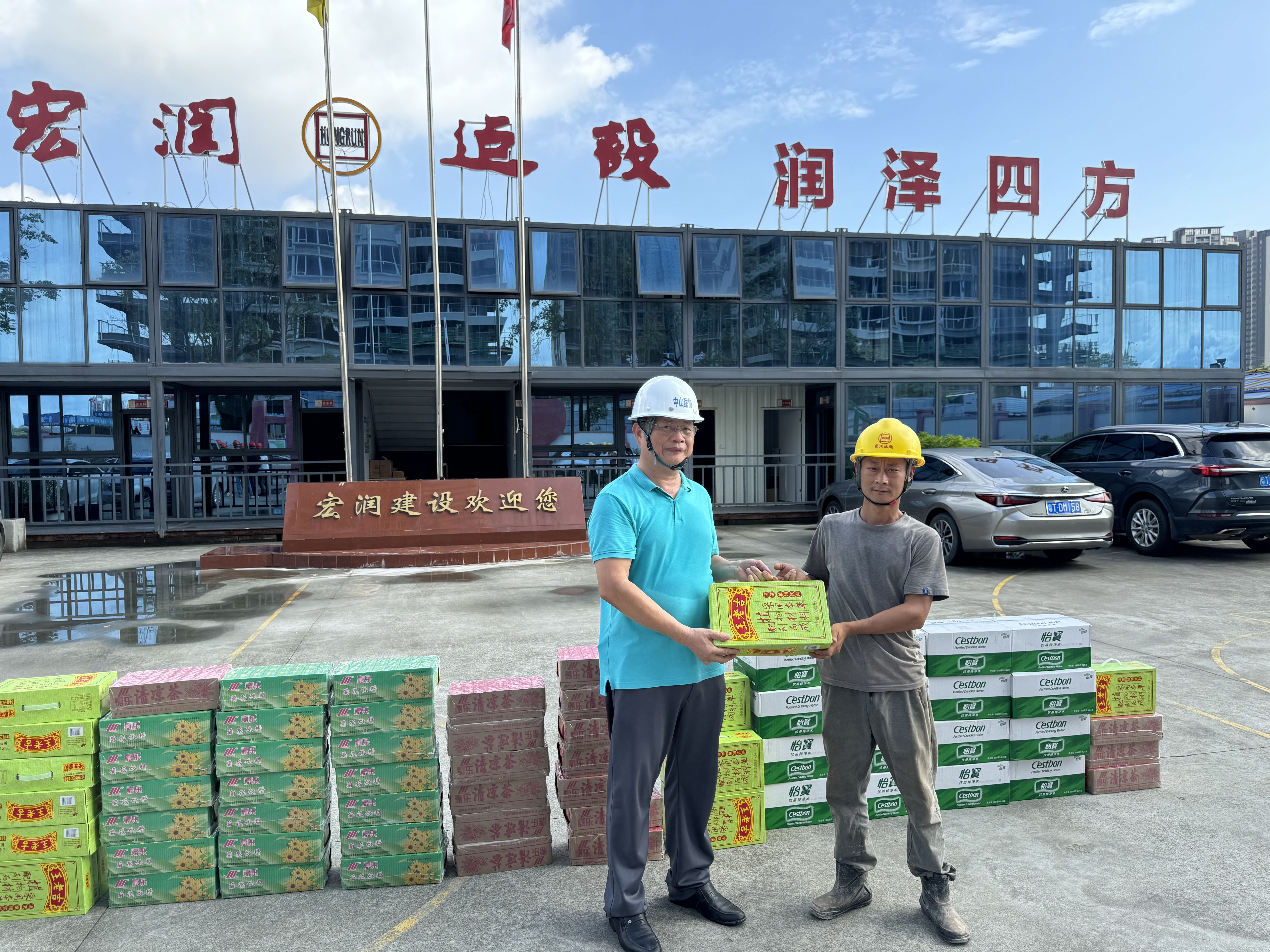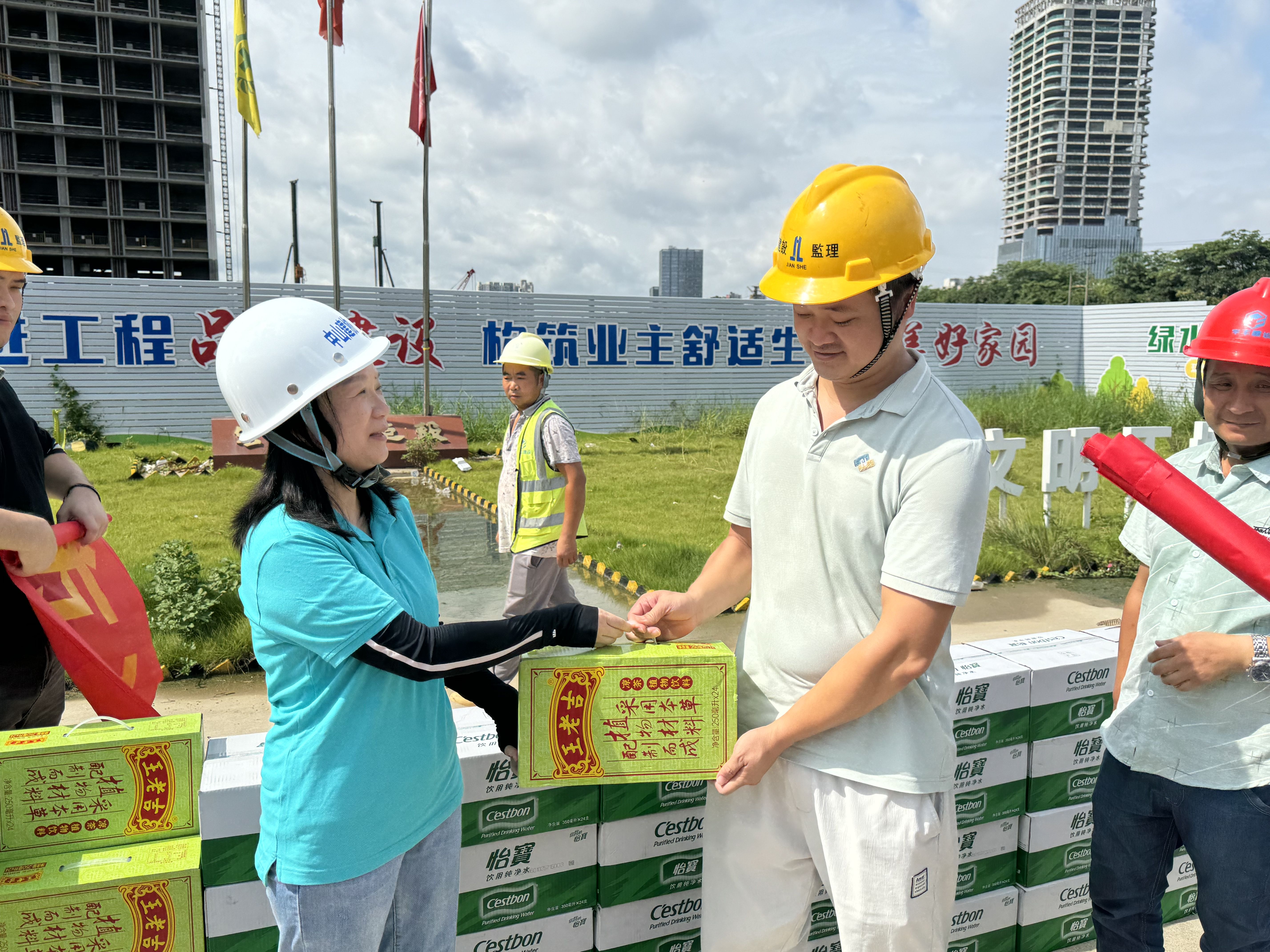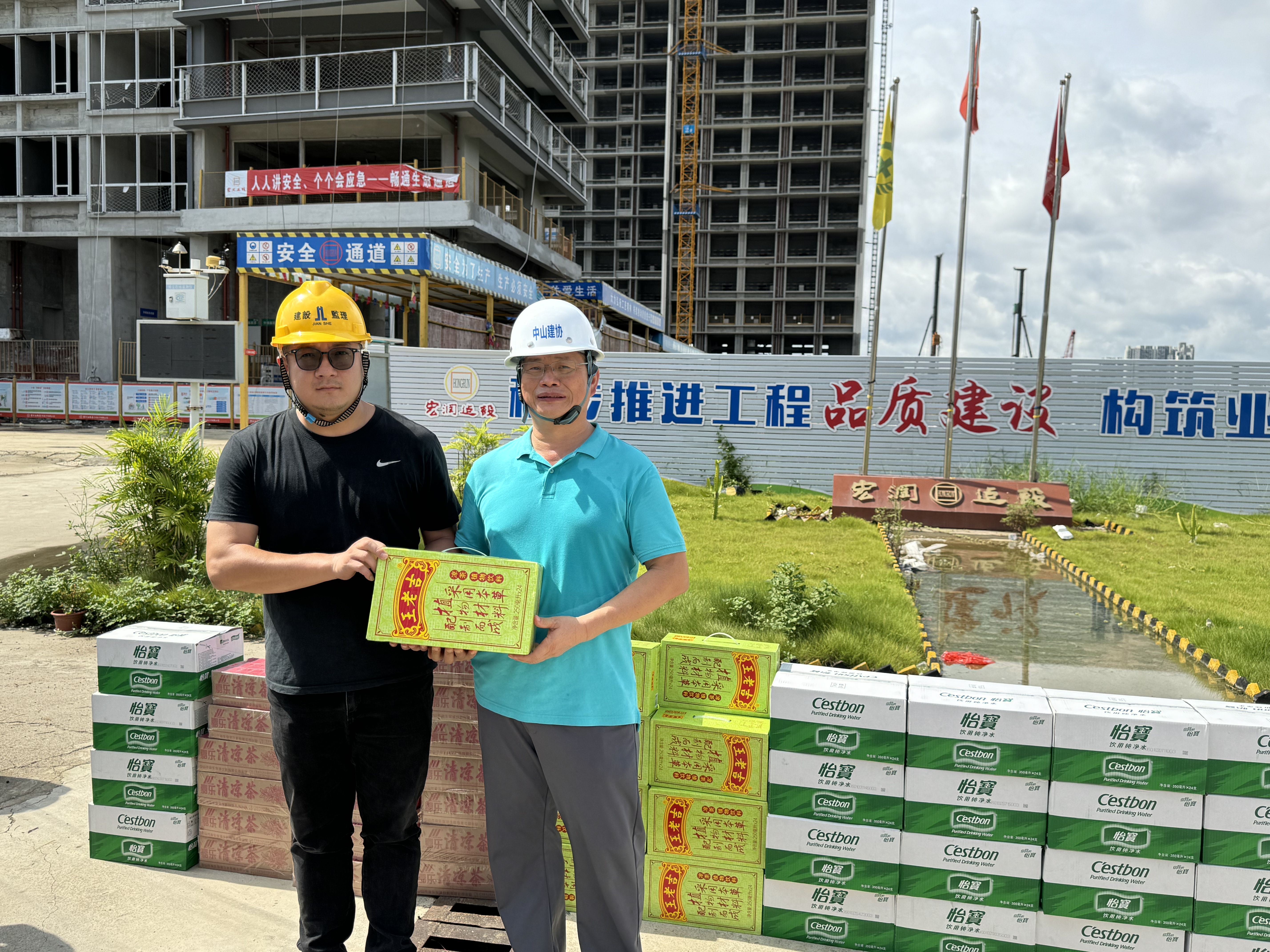 协会送上清凉茶、菊花茶、矿泉水等清凉饮料,关心慰问高温下坚守岗位的一线职工。行业工联会主席陈秋霞提醒施工单位要根据夏季高温特点,落实主体责任,合理安排作息,始终把安全生产摆在首位,做好户外作业职工的劳动保护工作,确保一线工人平安度夏。