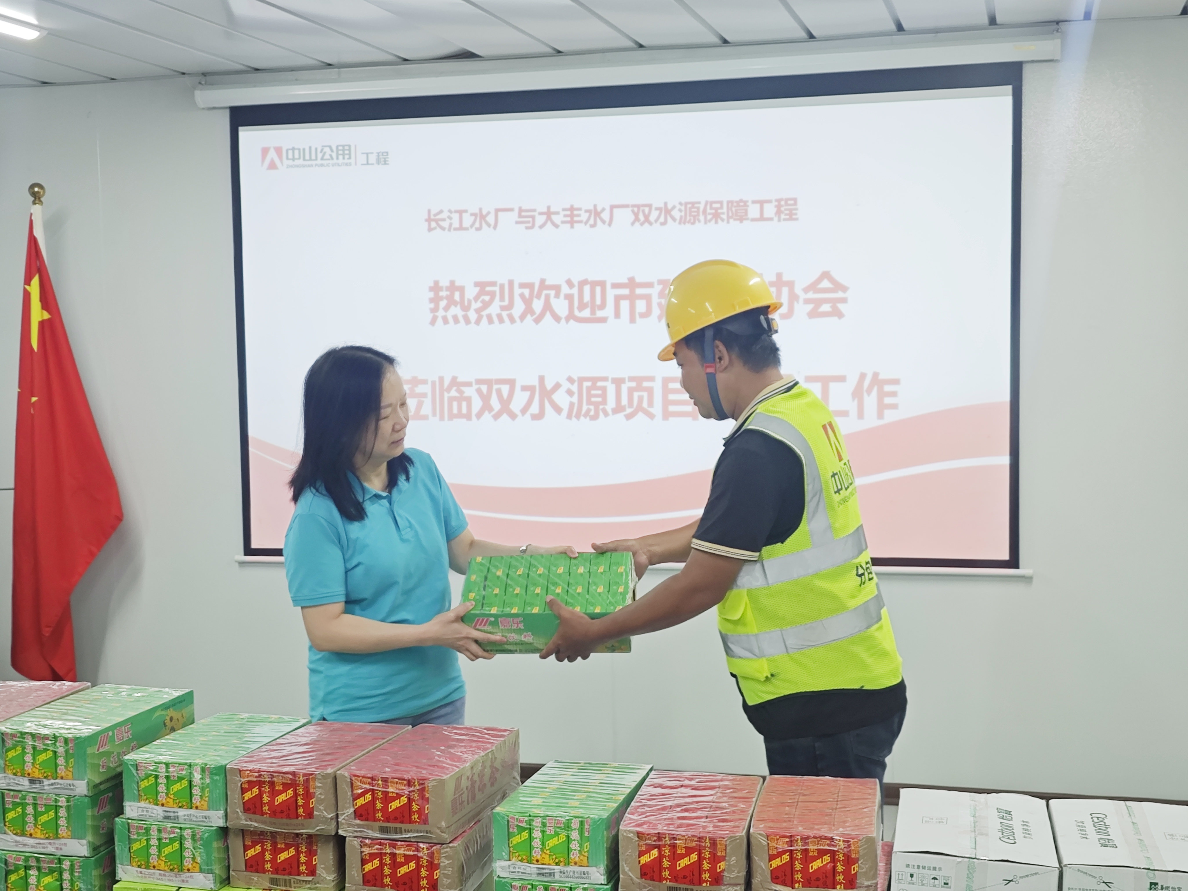 为深入贯彻落实习近平新时代中国特色社会主义思想主题教育,做好建筑行业夏季防暑降温工作,8月16日上午和21日上午,中山市建筑业行业工联会先后走访长江水厂与大丰水厂双水源保障工程等七个项目施工现场对八家建筑业企业的一线工人开展“夏日送清凉”慰问活动。中山市建筑业协会秘书长程焕怀、党支部书记杨立群、行业工联会主席陈秋霞等领导出席了本次活动。