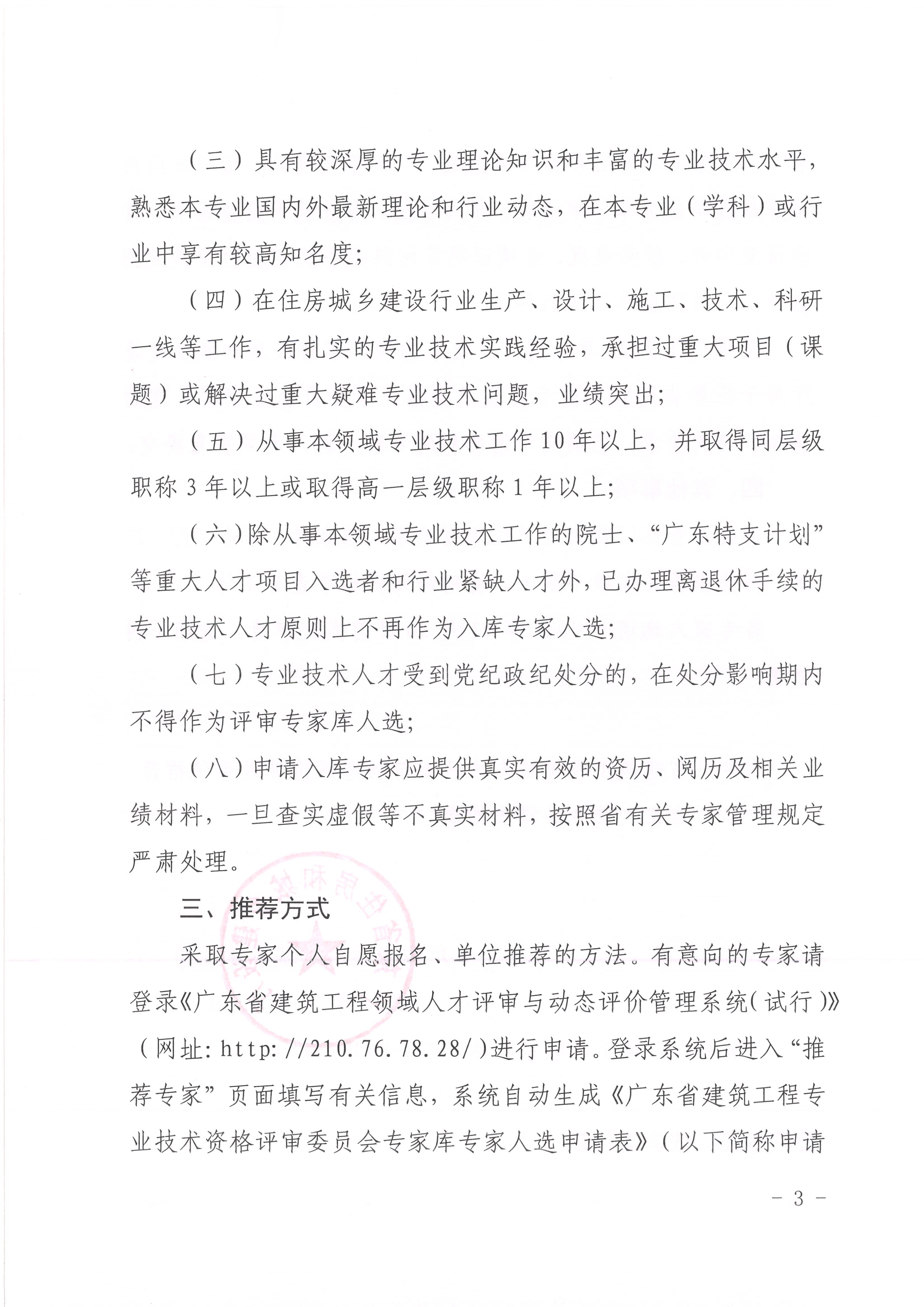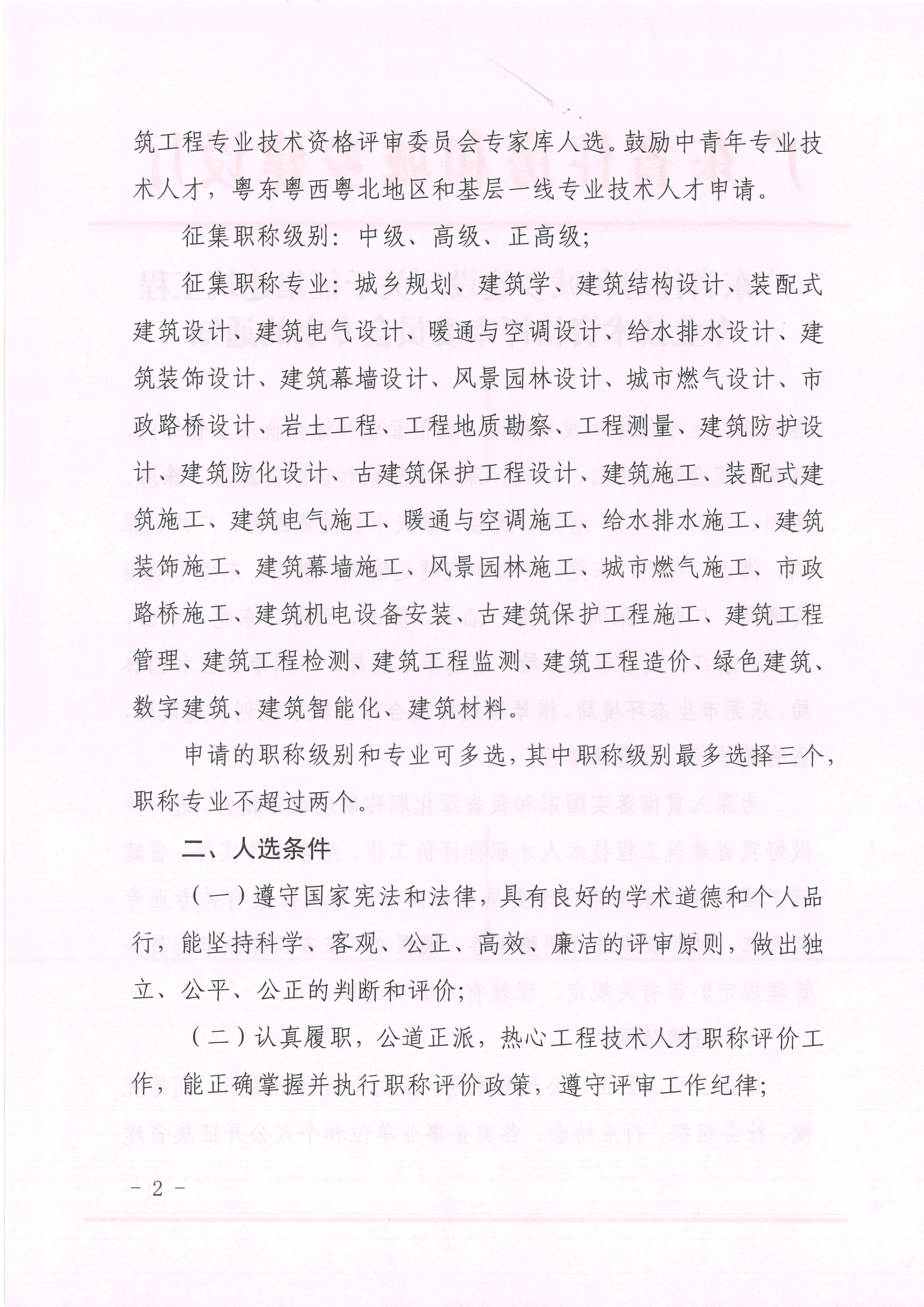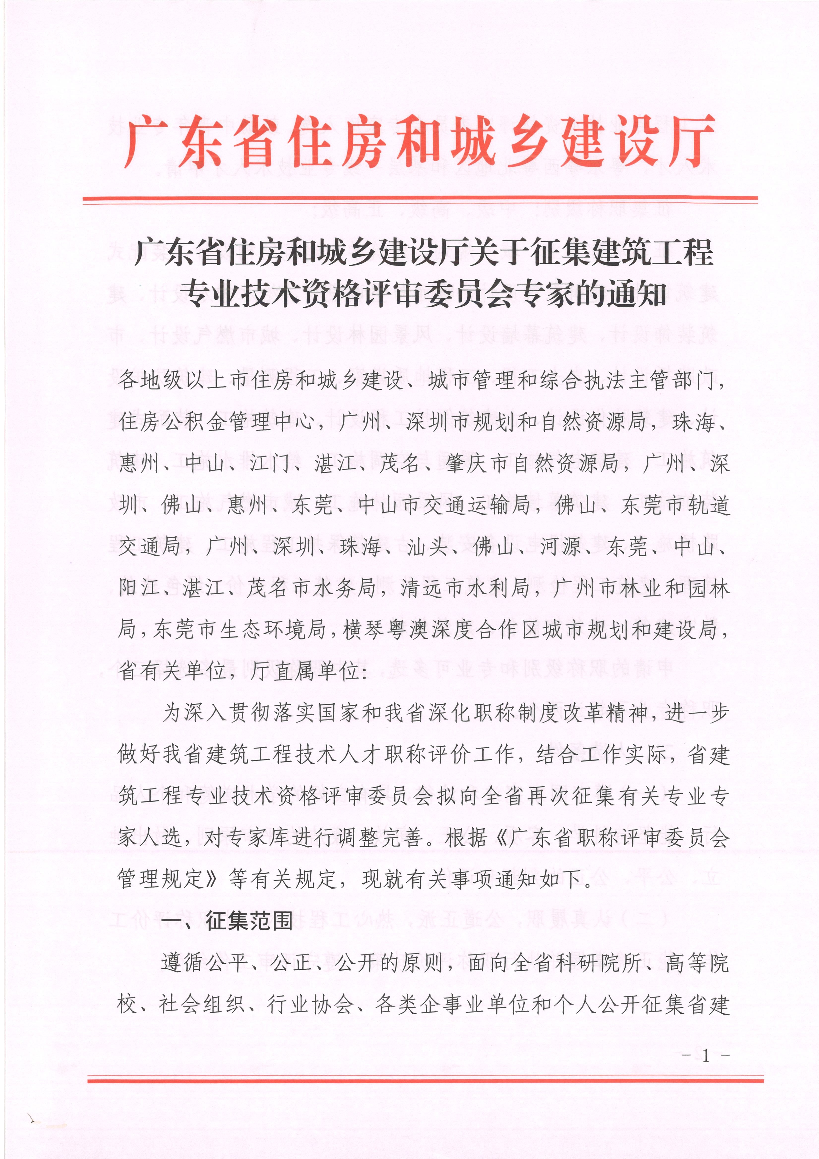 广东省住房和城乡建设厅关于征集建筑工程专业技术资格评审委员会专家的通知